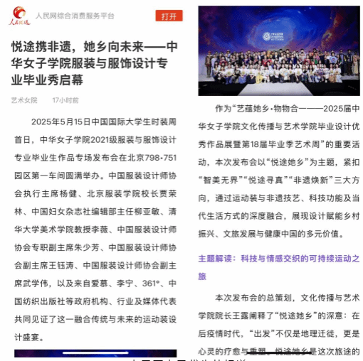 两场精彩的设计作品发布会吸引了人民网人民优选、光明网、中国妇女杂志社等权威媒体报道,相关专题宣传和采访视频在快手平台播放量近110万,引发广泛关注和好评。