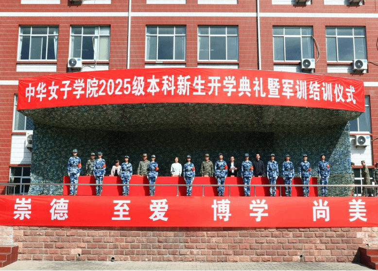 “风雨中诞生,黎明前创建……向着未来扬起知识的风帆……”中华女子学院2025级新生开学典礼暨军训结训仪式在响彻全场的校歌声中圆满结束。